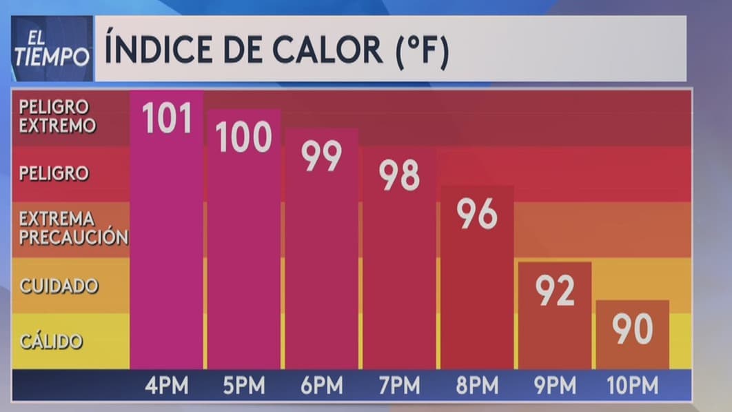 Este lunes se registrarán temperaturas máximas alrededor de los 100 grados Fahrenheit con niveles moderados de humedad.