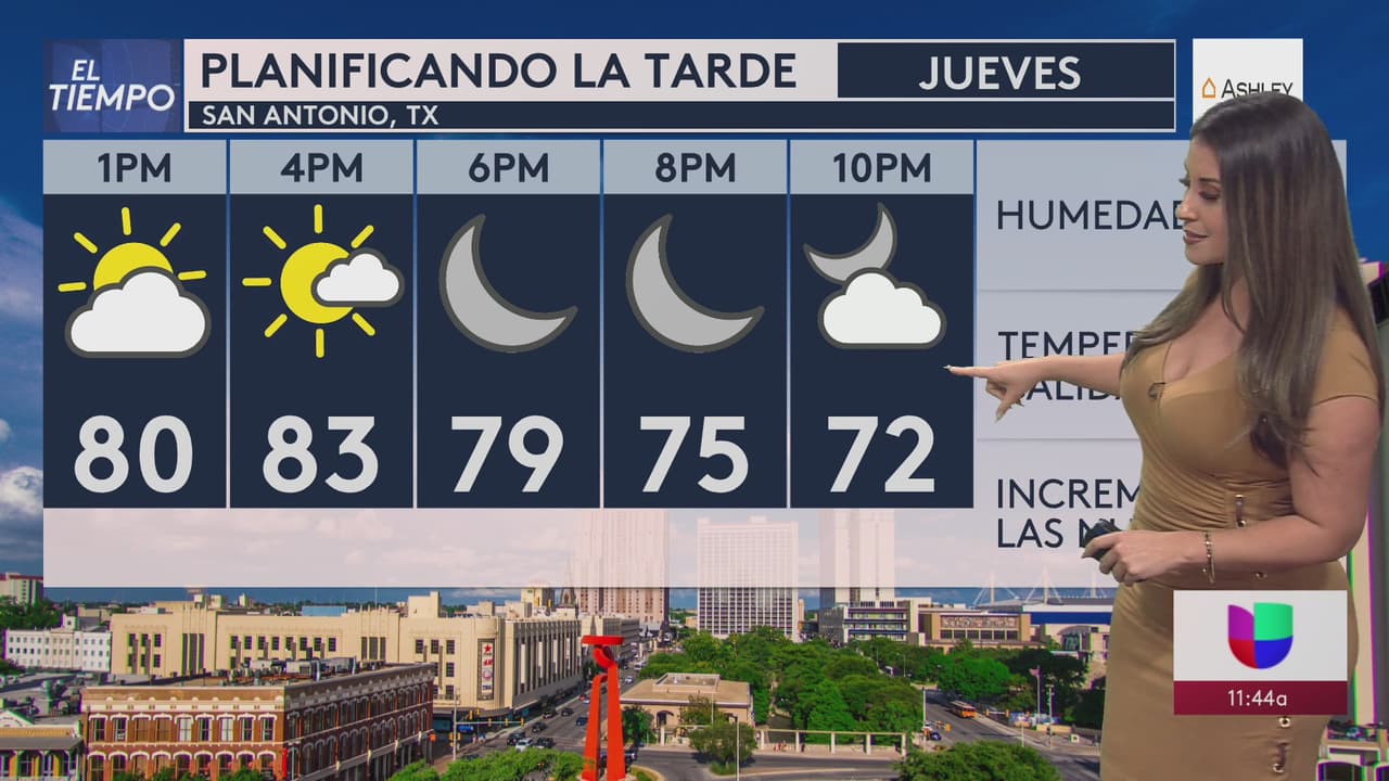 Espera una tarde con nubosidad moderada y tiempo cálido en San Antonio, con temperaturas máximas alrededor de los 83 grados Fahrenheit.