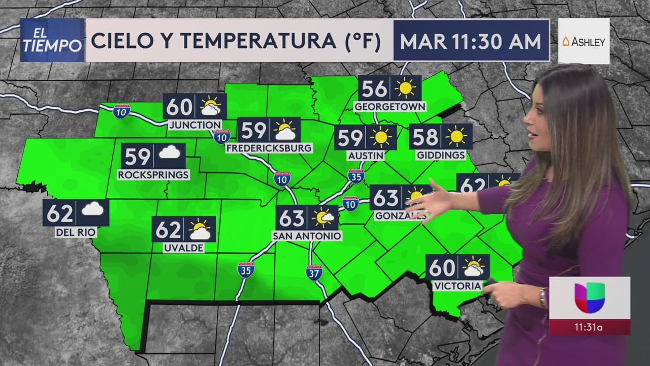 Espera una tarde en San Antonio con tiempo ligeramente húmedo, cielos parcialmente nublados y temperaturas máximas alrededor de los 70 grados Fahrenheit.