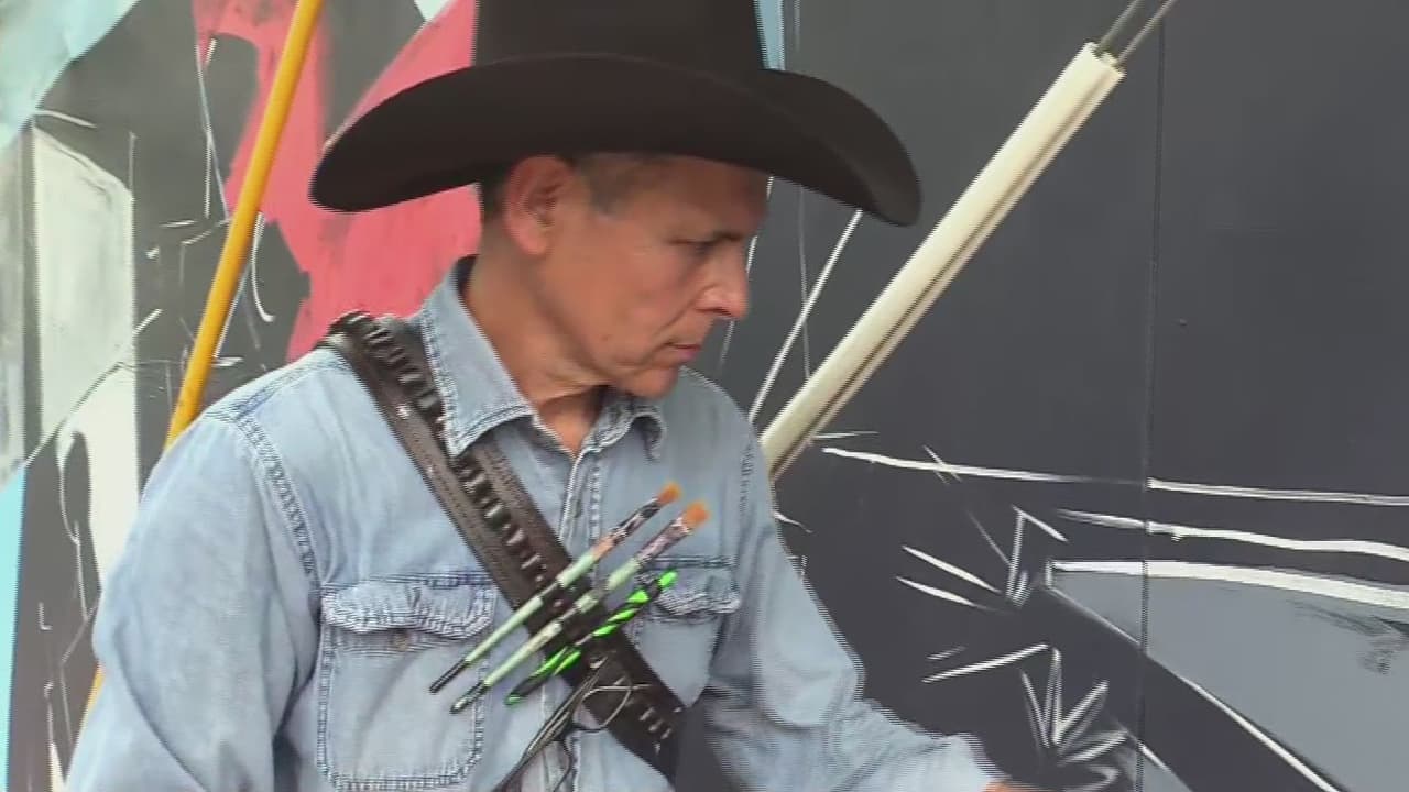 Muralista viajó desde Dallas a Uvalde para rendir homenaje a las víctimas del tiroteo