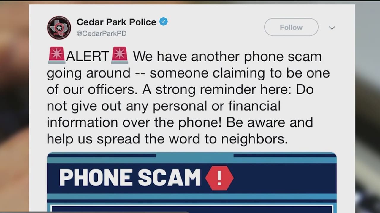 Al parecer un individuo llama haciéndose pasar un oficial de la Policía de Cedar Park para obtener datos sensibles. Se pide a la comunidad mantenerse alerta.