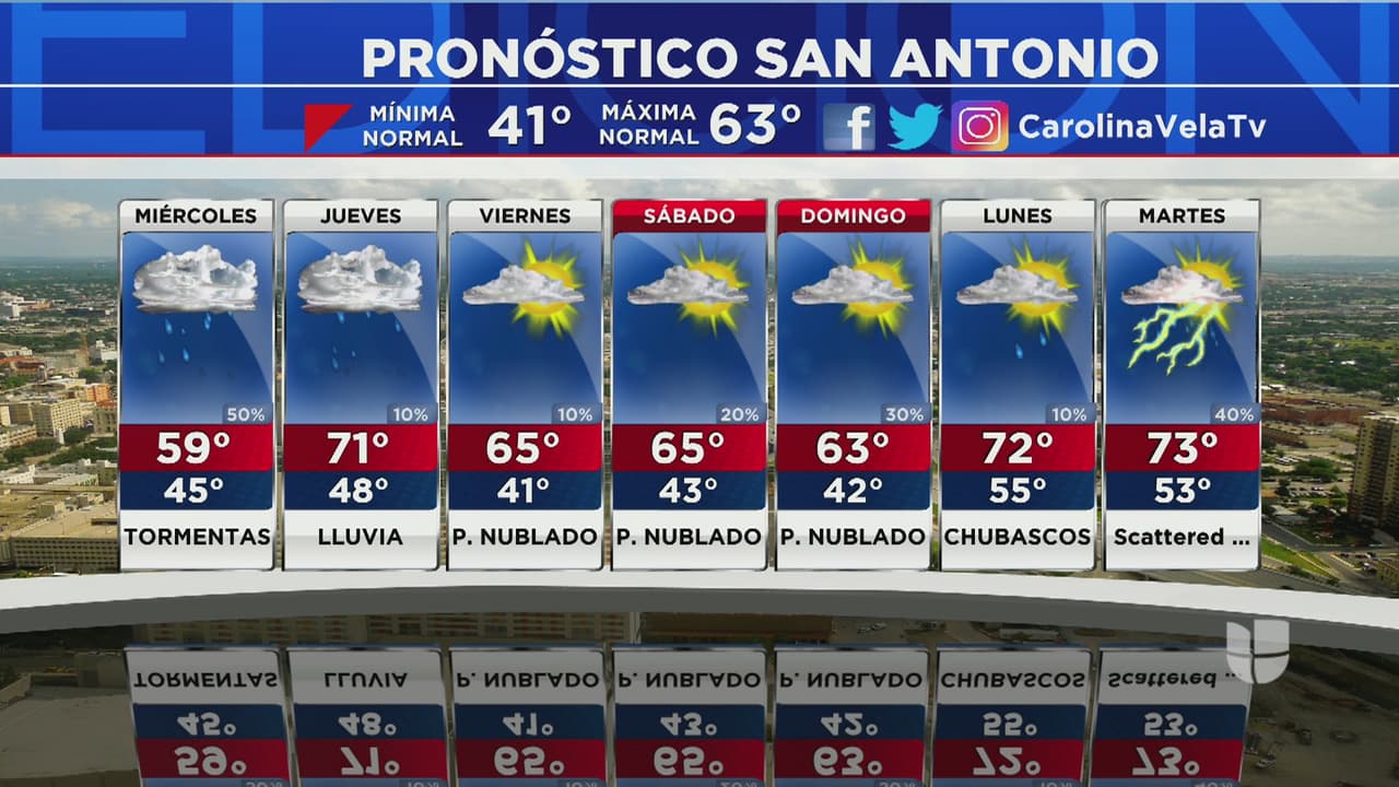 Espere temperaturas alrededor de los 56 grados Fahrenheit con posibles tormentas a partir de esta noche.