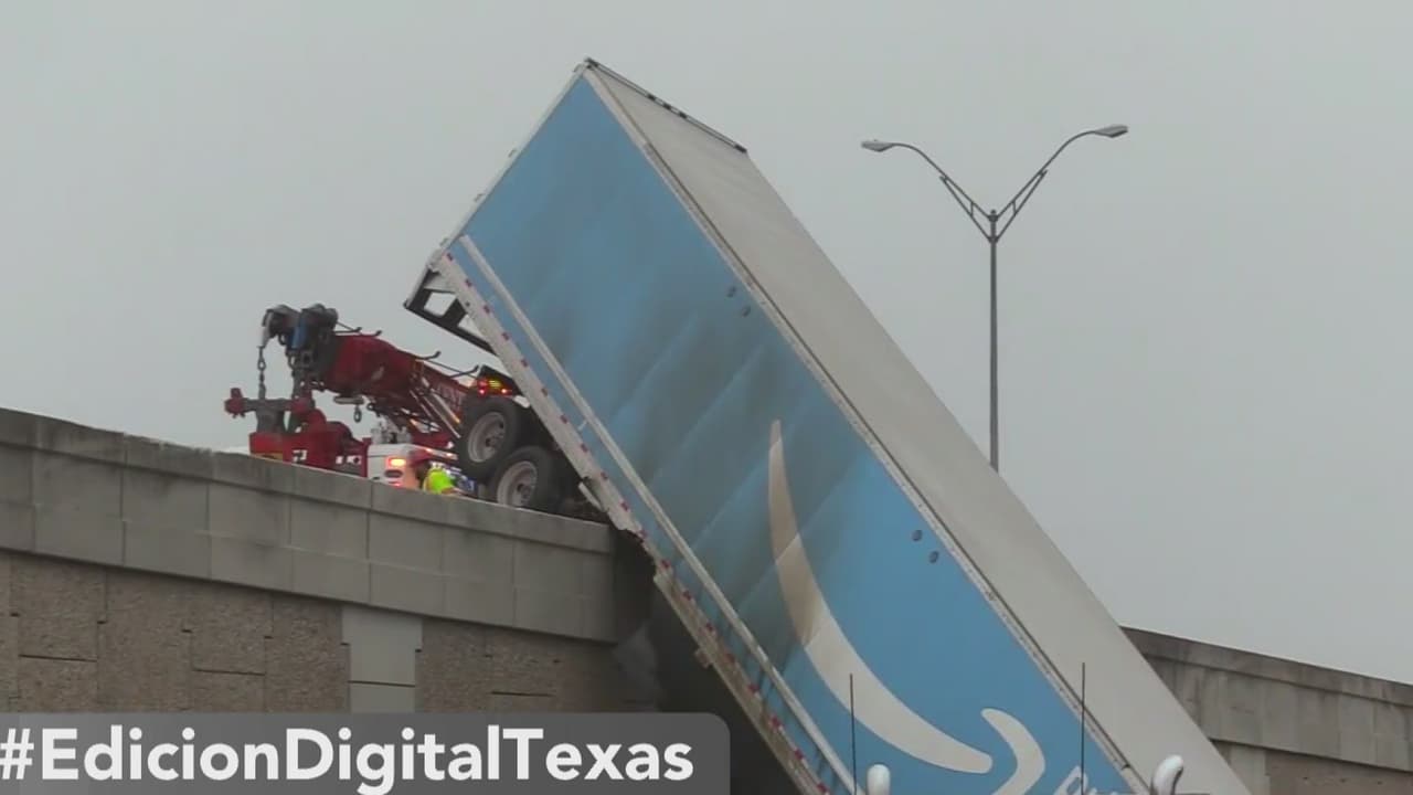 Tráiler de Amazon queda colgado en la carretera interestatal 35