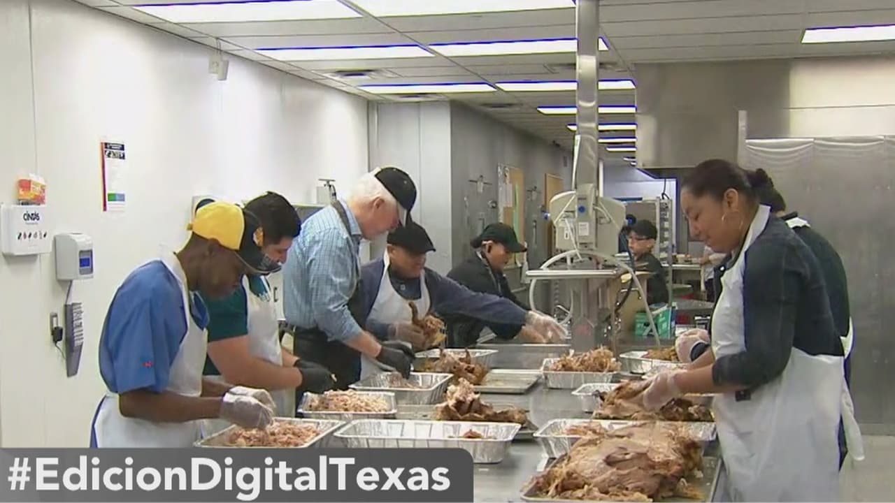 El senador texano ayudó al equipo encargado de preparar la cena de Acción de Gracias de Raúl Jiménez, que cada año proporciona una cena a muchas familias de la región.