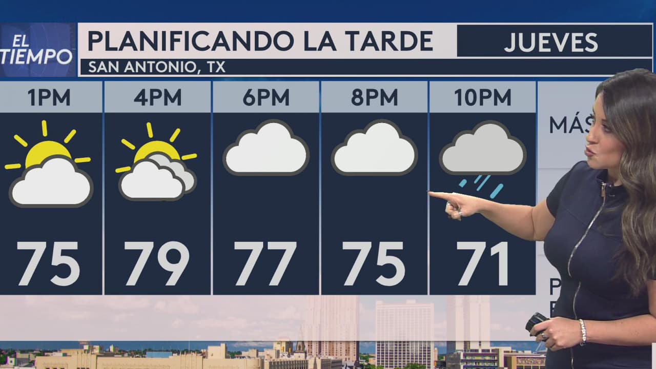 Tras una mañana de jueves con cielos despejados en San Antonio, prepárate porque por la tarde incrementa la nubosidad con temperaturas máximas de 79°F, sin embargo, por la noche la posibilidad de lluvias y aguaceros incrementa.