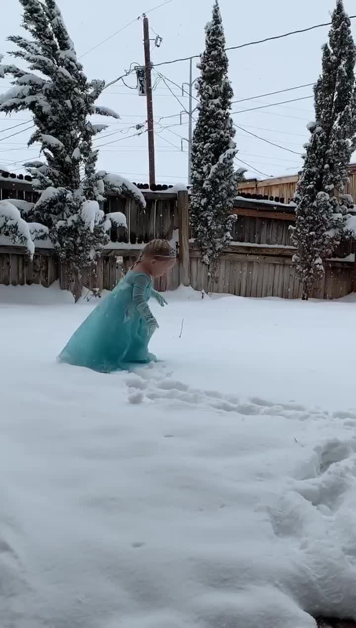 El tierno video viral de una niña disfrazada de 'Frozen' mientras baila durante nevada en Texas