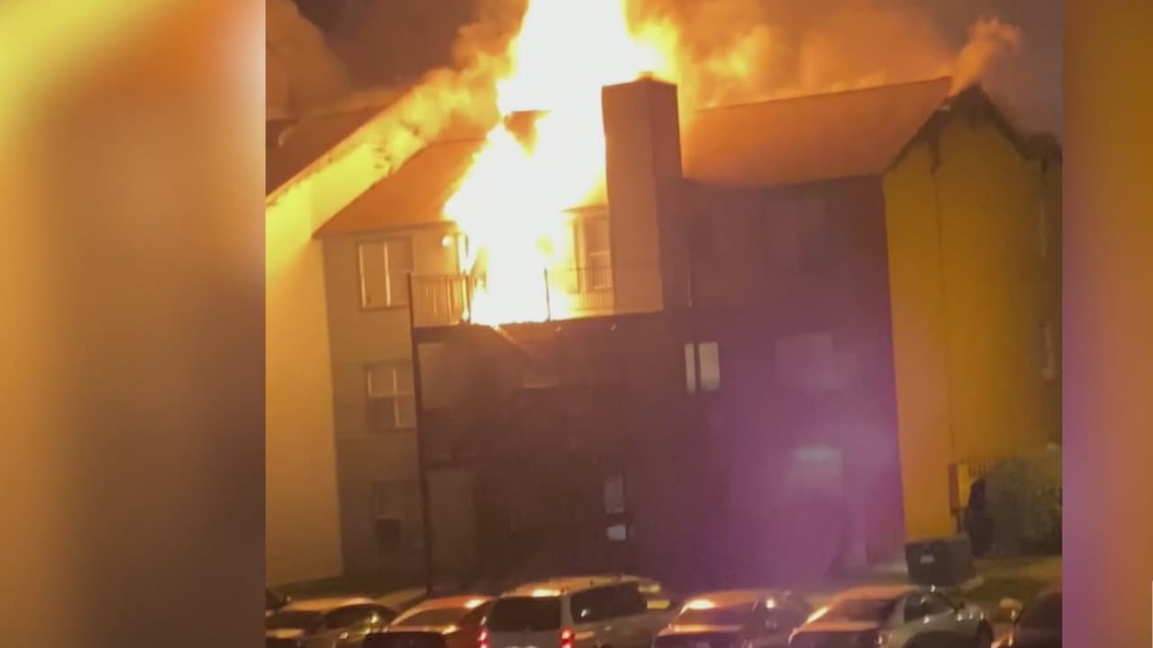 Los residentes de un complejo de departamentos se quedaron sin hogar luego de que 12 unidades se quemaran o sufrieran daños extensos al registrarse un incendio. Los pisos del edificio colapsaron uno encima de otro.