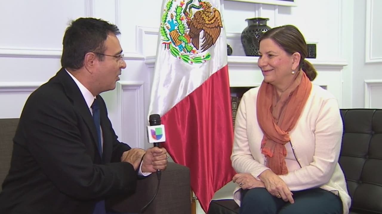 Martha Bárcena, embajadora de México en EEUU, estuvo de visita en San Antonio y habló ante las cámaras de Univision 41 de temas como inmigración y la relación binacional.