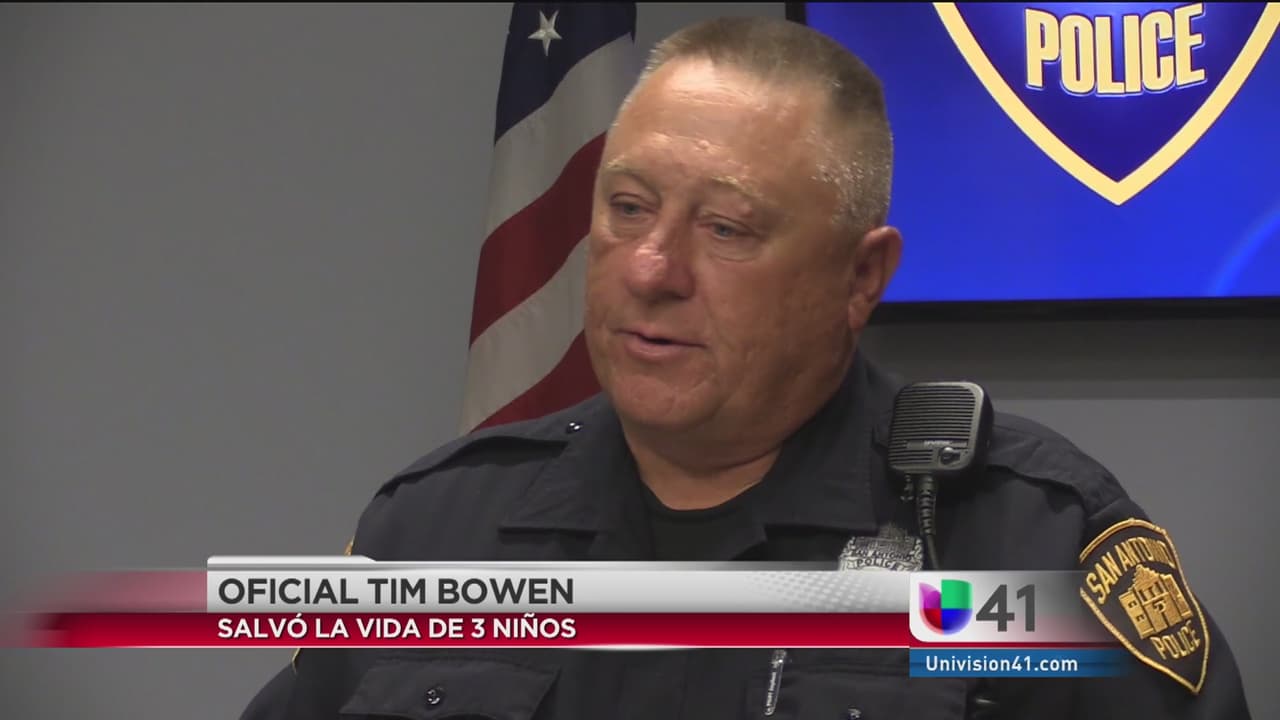 El oficial, Tim Bowen, recibió un reconocimiento a su trabajo por salvar la vida de tres niños al rescatarlos de un departamento que se estaba incendiando.