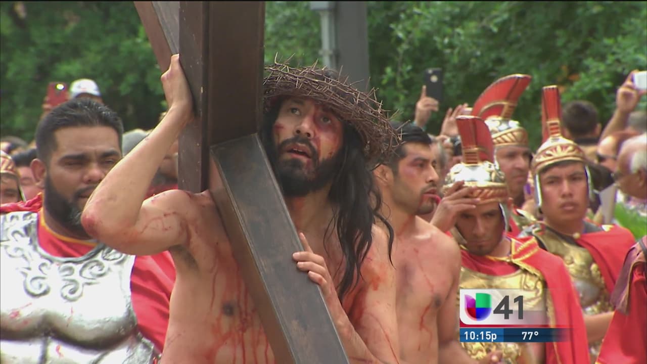 Fieles católicos asistieron a la representación de la pasión de Cristo en San Antonio