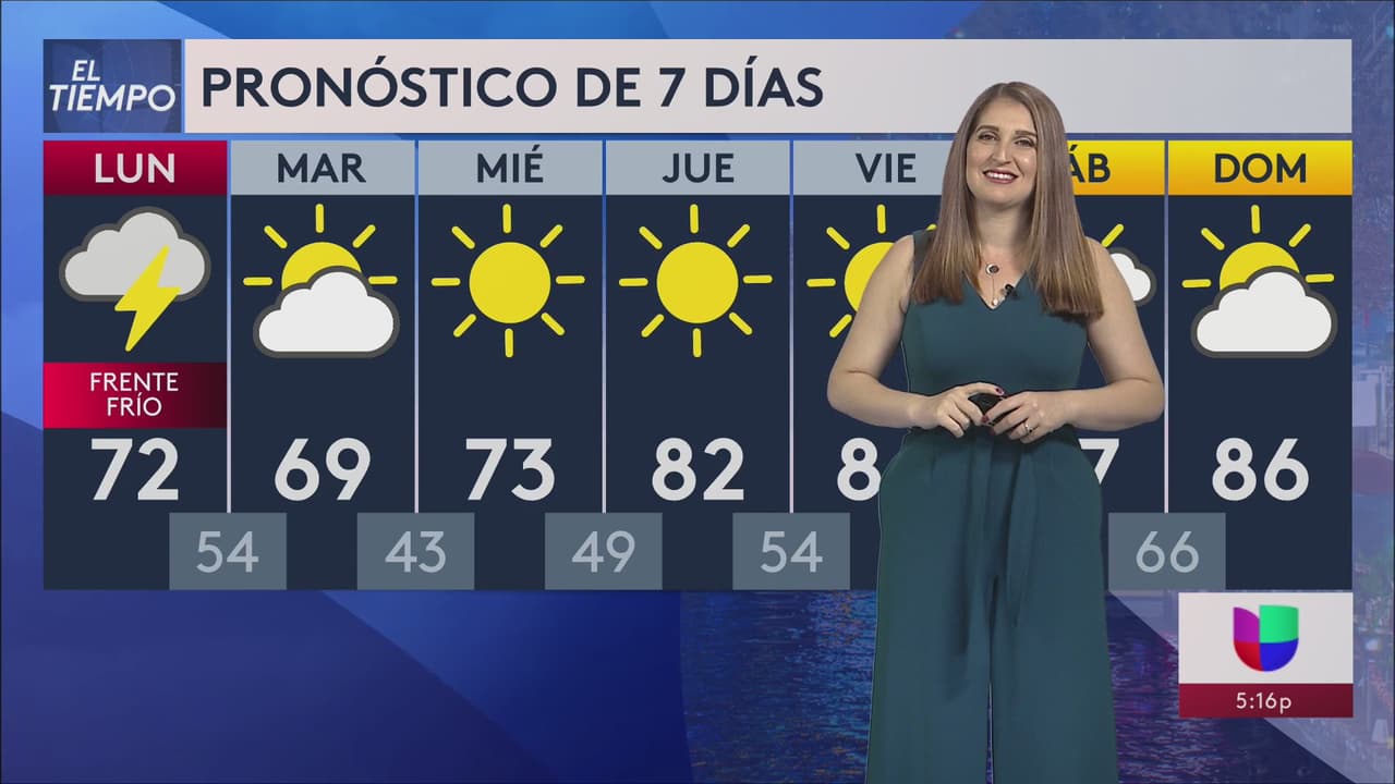 Este inicio de semana el paso de un frente provocará descenso en las temperaturas, con máximas en el rango de los bajos 70 grados y probabilidad de lluvias.