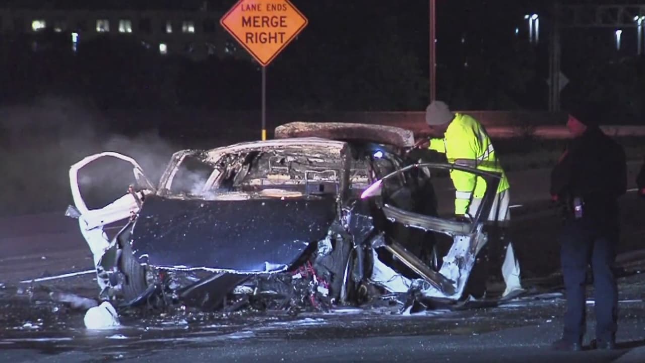 Según las autoridades, el conductor manejaba en exceso de velocidad y se pasó un alto, para luego derrapar el vehículo, que terminó volcado e incendiado, costándole la vida a los dos ocupantes.