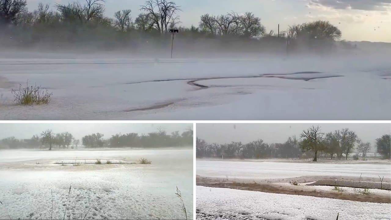Estas imágenes se grabaron el miércoles 29 de mayo en Marathon, un pequeño poblado al oeste de Texas. La combinación de granizo con calor intenso causaron una niebla que parecía un paraíso invernal. Esta tormenta es parte de los