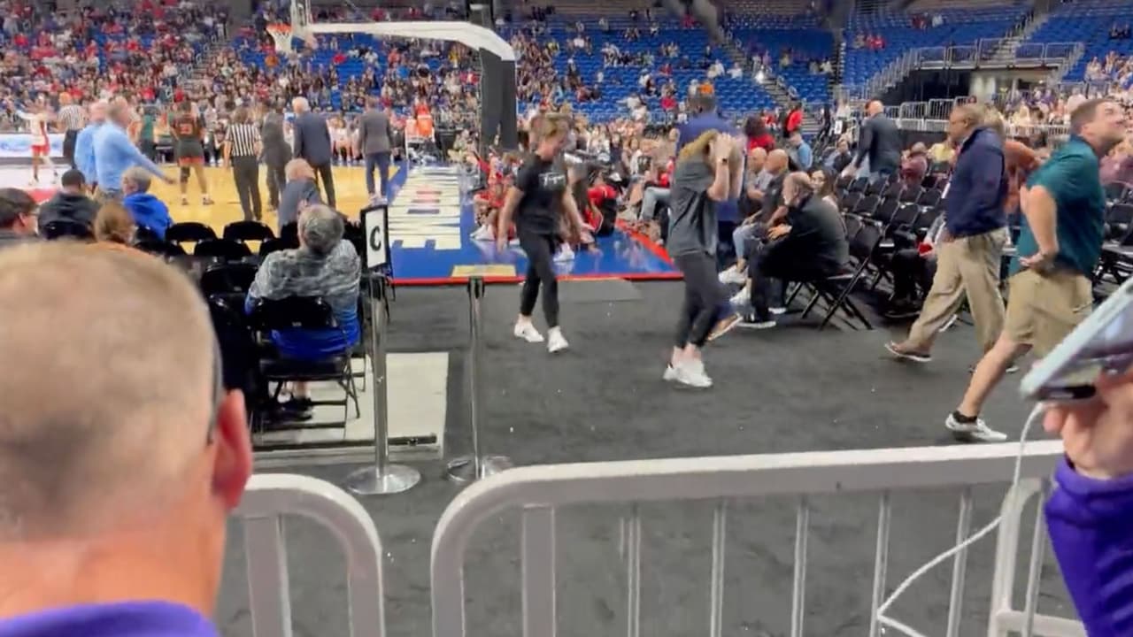 Un entrenador captó el momento en el que el granizo perforó el techo del Alamodome de San Antonio, durante un juego de basquetbol femenil.