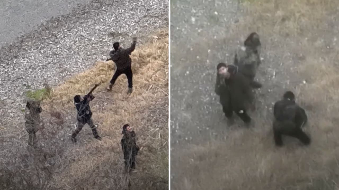 En los videos del dron, los hombres armados tampoco aparecen dando disparos hacia el otro lado del río, pero sí apuntan directamente a la cámara.