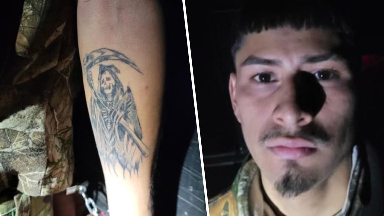 Fidel Rosas Gutierrez fue encontrado en un rancho privado del condado de Webb, en Texas, y las autoridades afirman que es miembro del Cártel del Noreste. Así lo arrestaron y este fue uno de los tatuajes que encontraron en él.