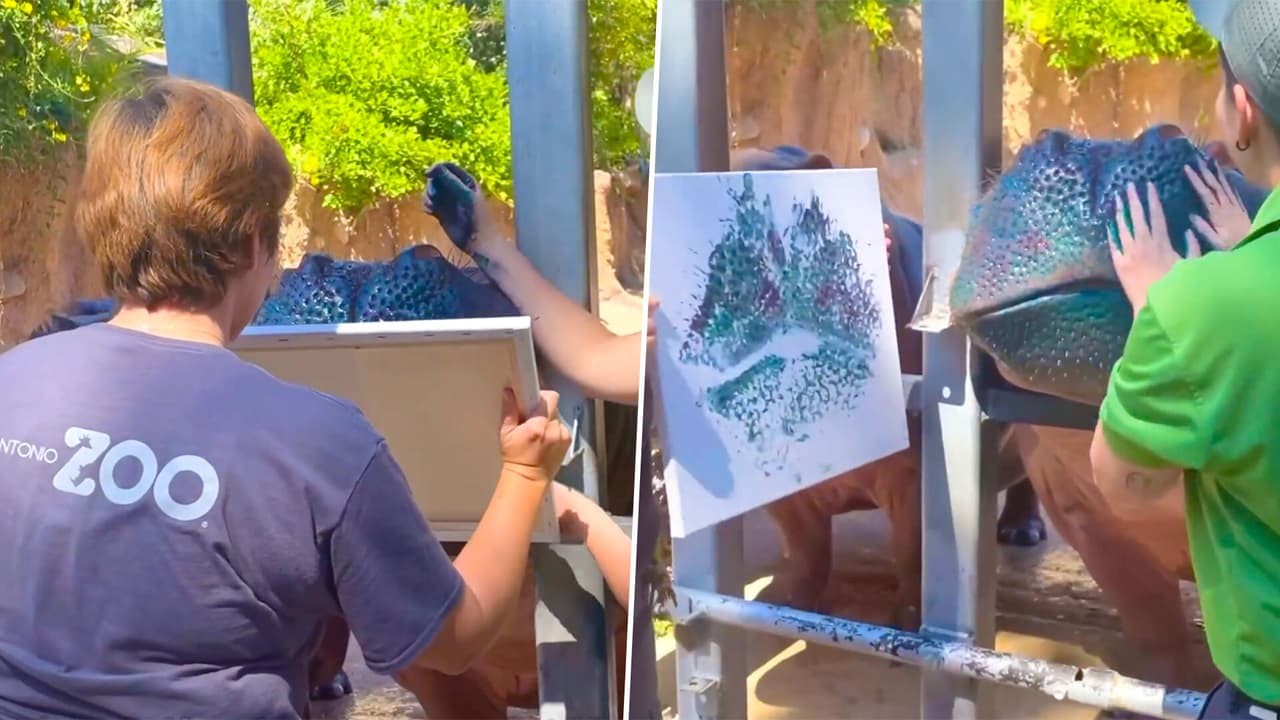 El Zoológico de San Antonio explicó que está pintando a sus hipopótamos para enriquecer sus sentidos y ayudarlos a sentirse más cómodos con sus cuidadores.