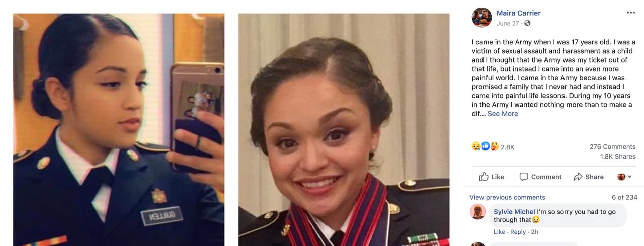 Erika Allysa Arzola y Maira Carrier, dos exsoldados, narraron el acoso y las agresiones sexuales que tuvieron que enfrentar durante sus años de servicio en el Ejército de Estados Unidos. Los mensajes responden al llamado de la familia de Vanessa, quien ha estado utilizando el hashtag #IamVanessaGuillen.