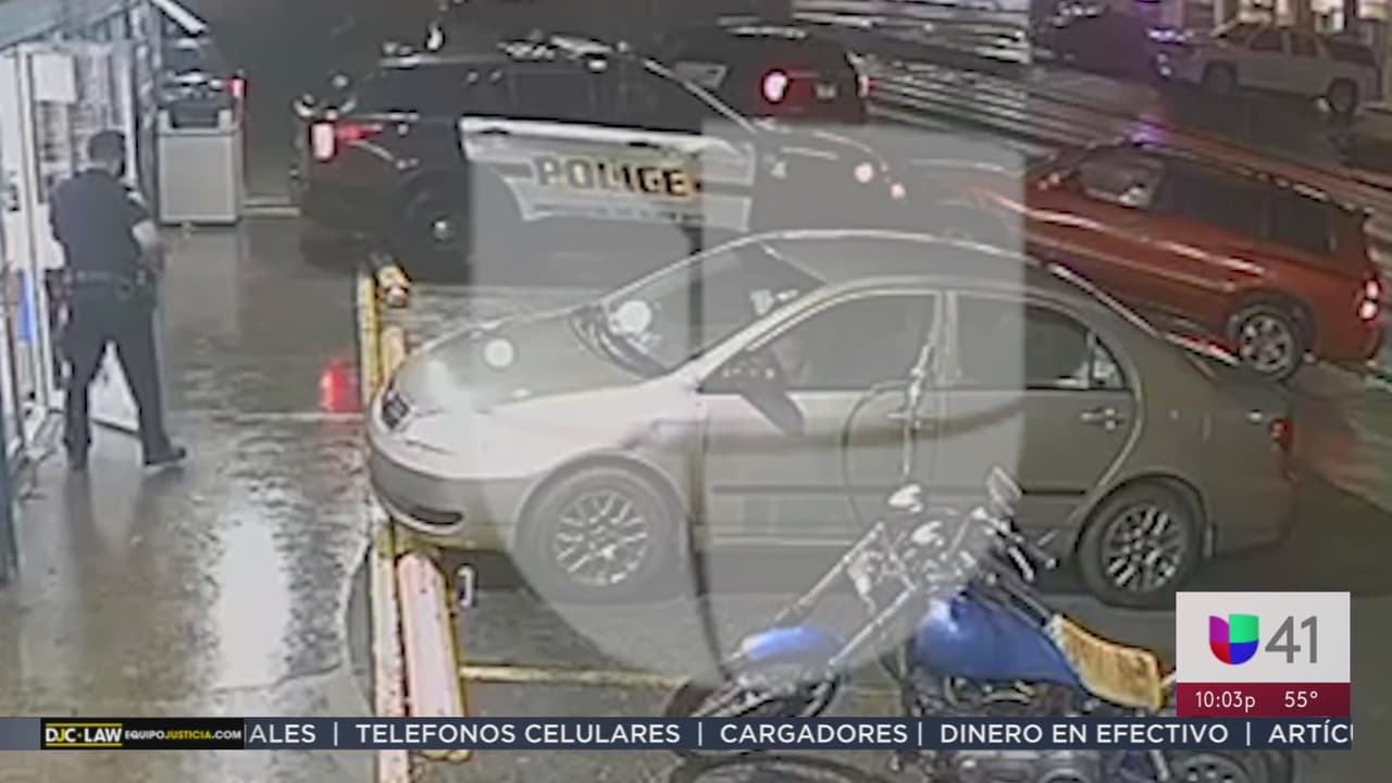 En un video obtenido por Univision San Antonio, las imágenes muestran el momento en el que el sospechoso chocó a propósito con una patrulla y luego comenzó a disparar.