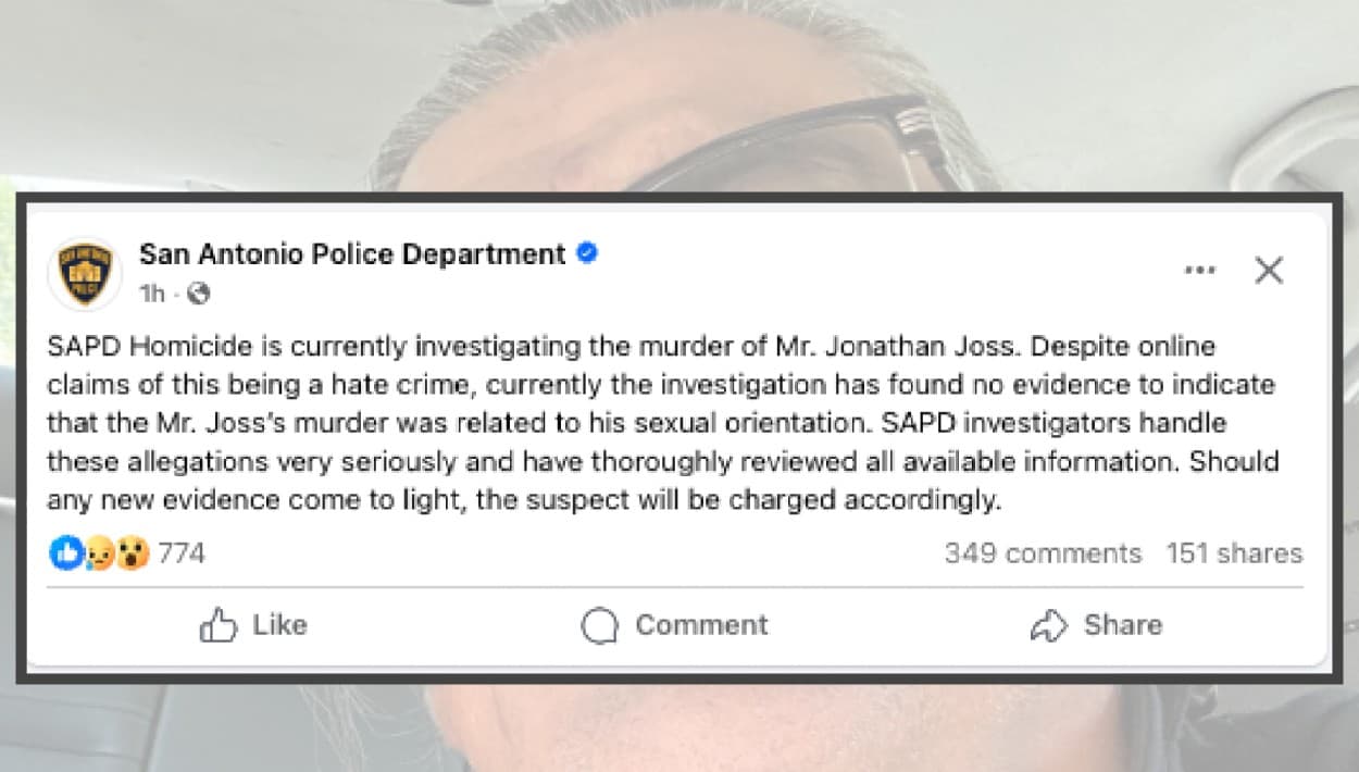 No obstante, el Departamento de la Policía de San Antonio indicó, en expresiones que colgó en sus redes sociales, que hasta el momento, "la investigación no muestra evidencia que indique que el asesinato del señor Joss estuvo relacionado con su orientación sexual", como asegura Tristan Kern, viudo del actor.