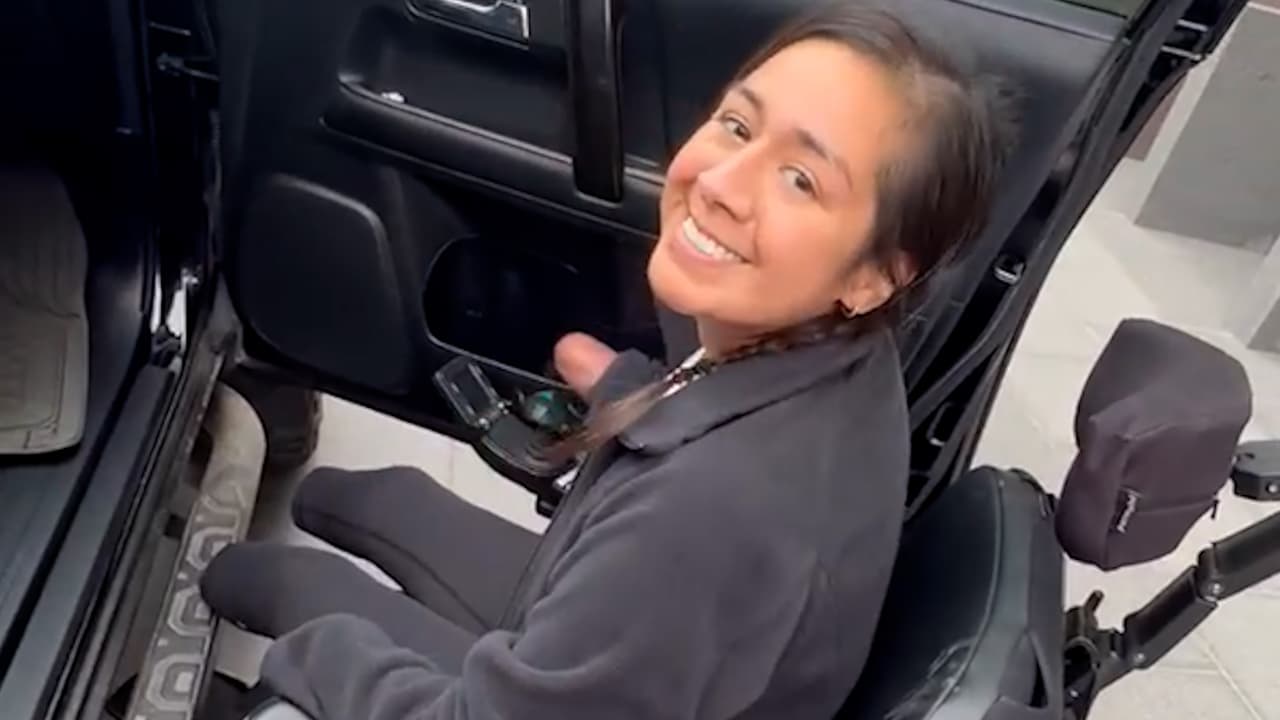 En un video, Krystina entra y sale de un vehículo sin la ayuda de nadie y la joven madre sonríe luego de su esfuerzo.