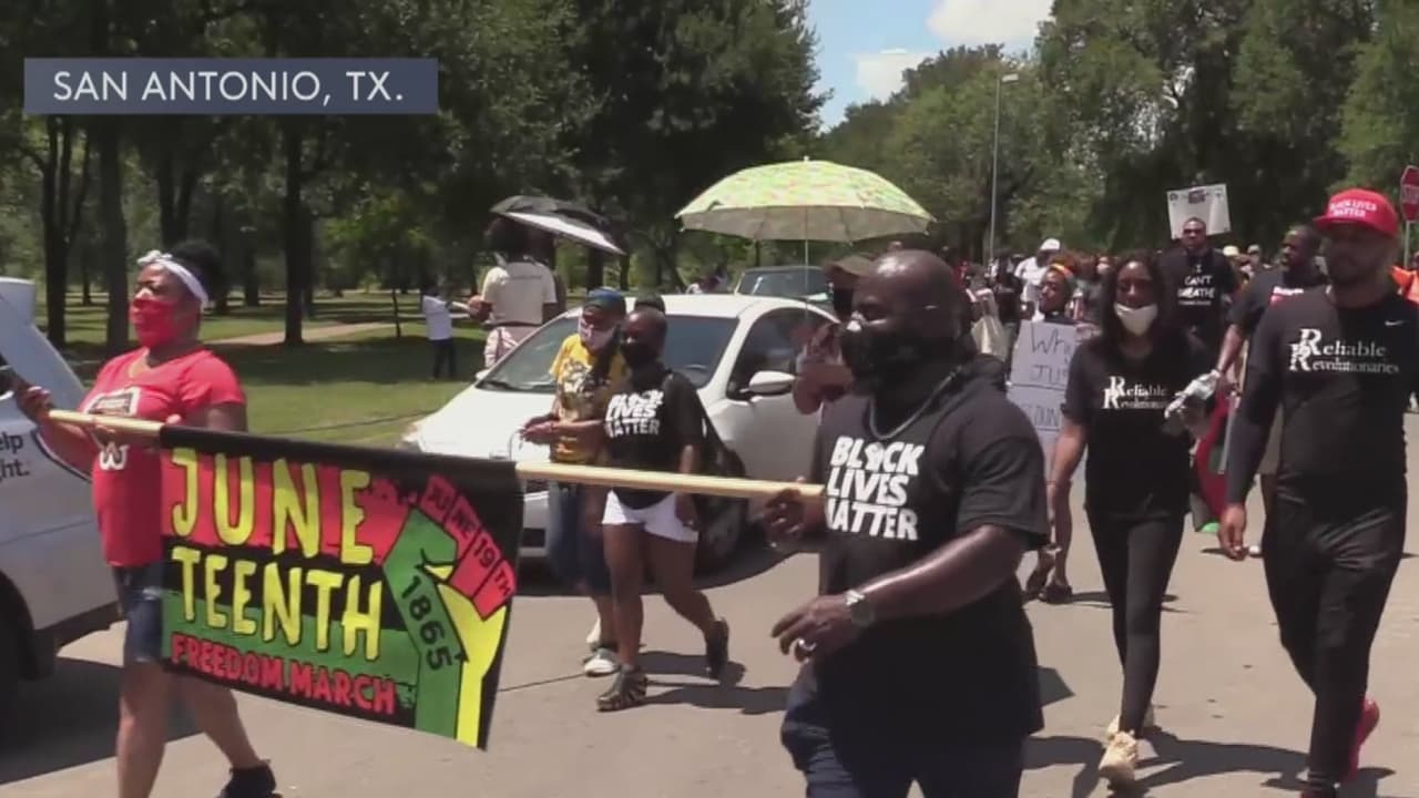 Decenas de personas marcharon en las calles de San Antonio para celebrar el día en que llegó a su fin la esclavitud en Texas. Los presentes se reunieron en el parque Martin Luther King.