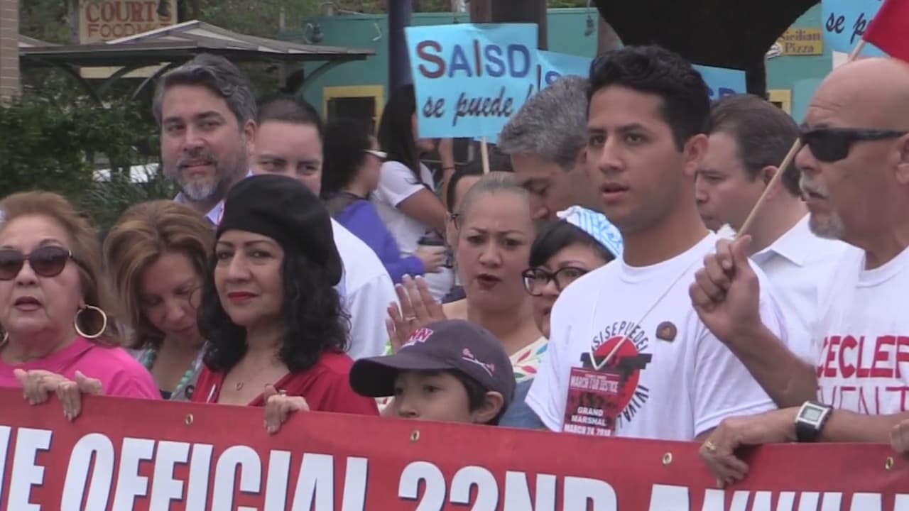 Cientos de personas se unieron a esta tradicional manifestación en memoria de César Chávez, que se enfocó en la seguridad escolar.