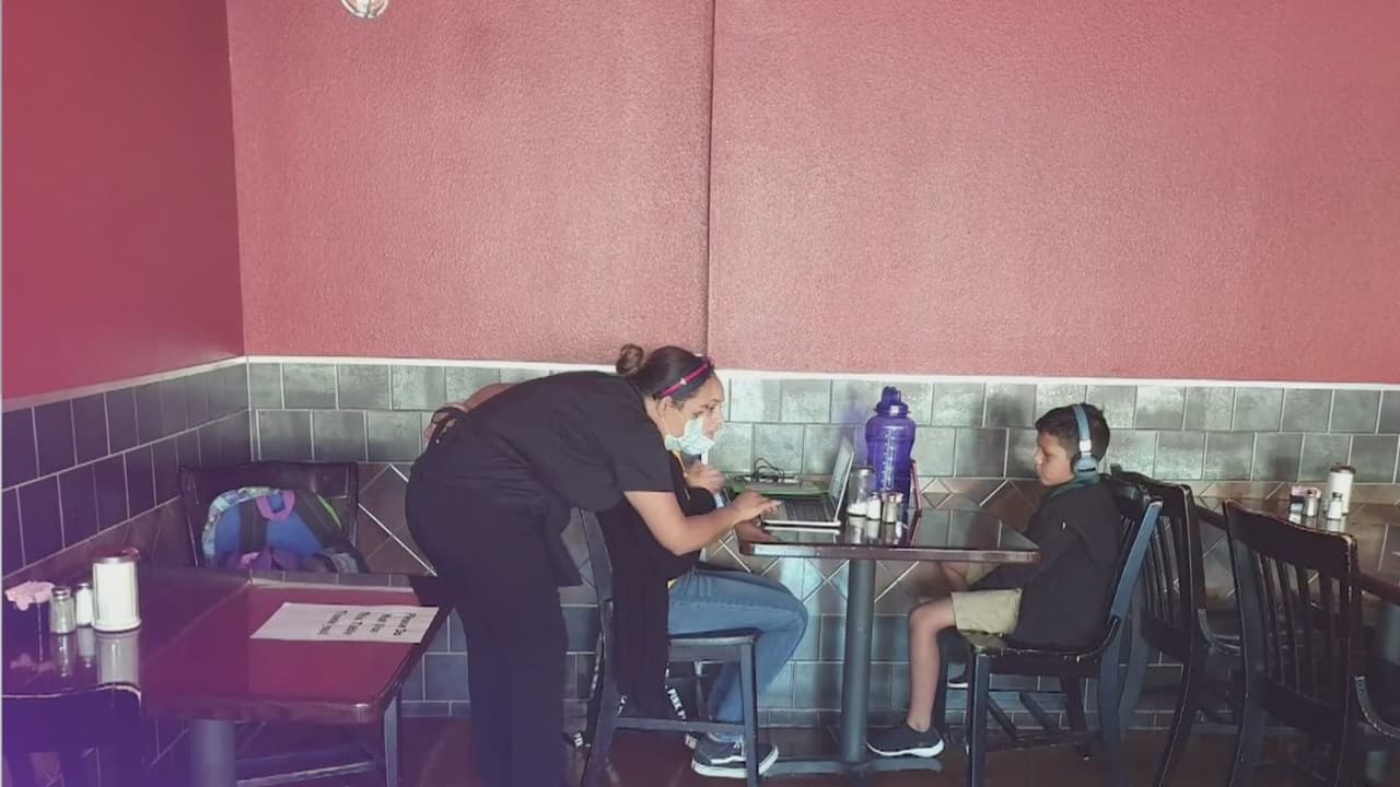 Le presentamos el caso de Yeraldi Flores, una madre que no tuvo otra opción más que llevar a sus hijos al trabajo para poder atender a los clientes del restaurante en el que se emplea y supervisar el aprendizaje de sus hijos.