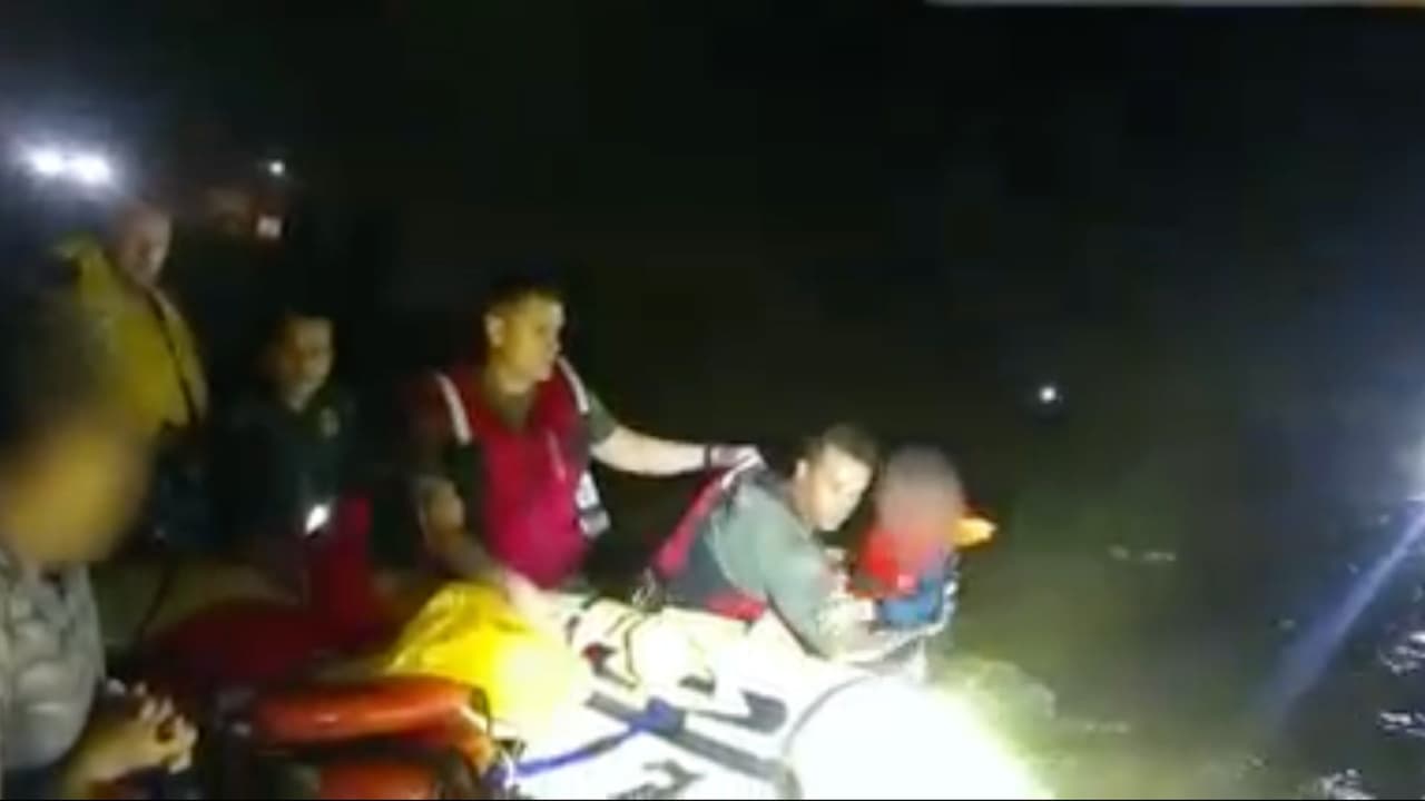 Agentes en botes lograron acercarse a ellos y los pusieron a salvo, a pesar de las rocas que amenazaban con voltear la embarcación.