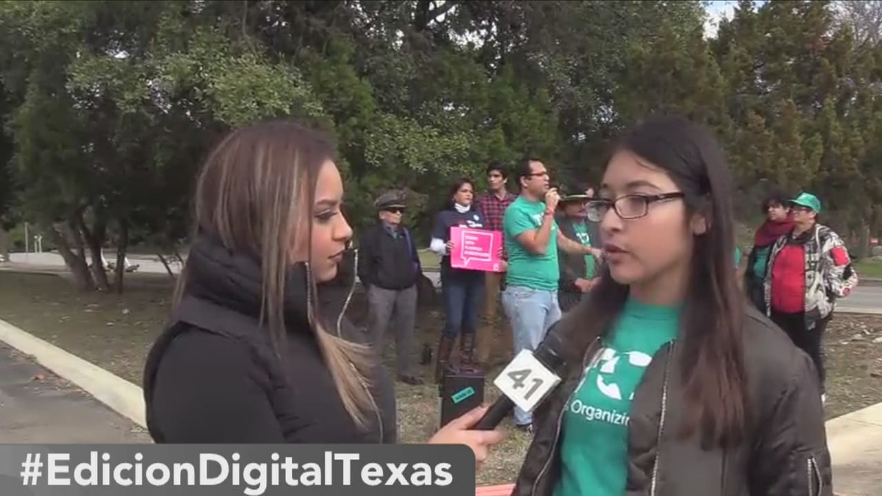 Manifestantes exigen al congresista Will Hurd que se oponga al muro fronterizo propuesto por Donald Trump