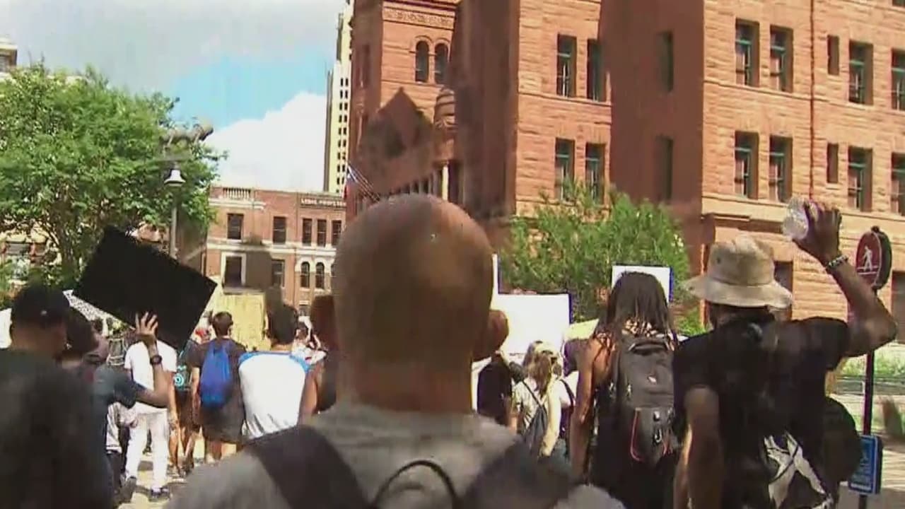 Al menos 500 personas se manifiestan frente a la corte del condado de Bexar para alzar la voz y exigir justicia para la población afroamericana.