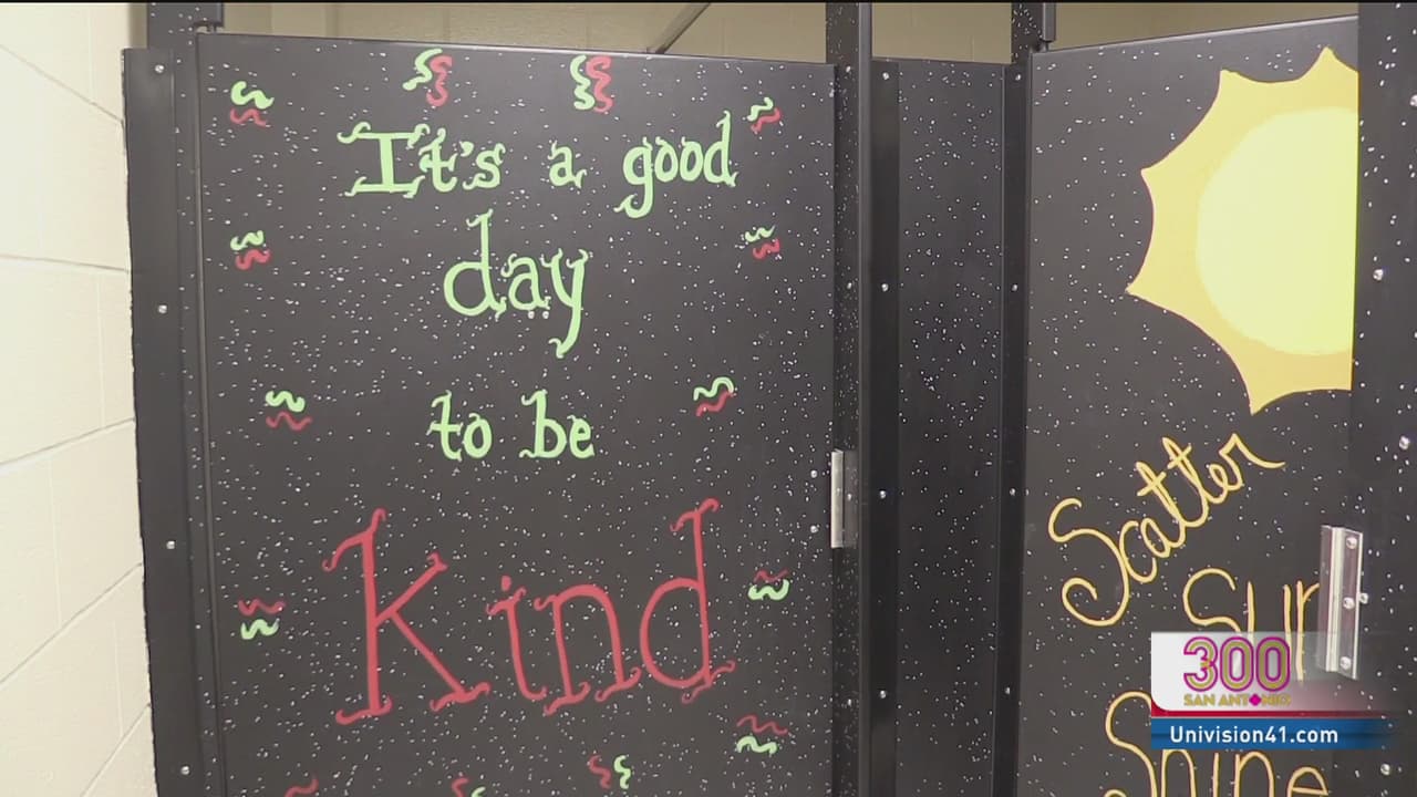 En la escuela Westwood Terrace maestros escribieron en las puertas de los baños mensajes con el fin de motivar a sus alumnos en este año escolar.