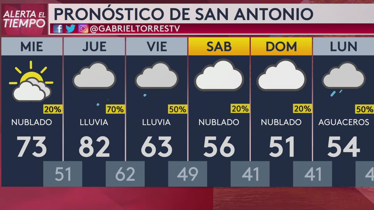Este miércoles predominarán los nublados con temperaturas máximas de 73 grados. En horas de la noche se esperan lluvias.