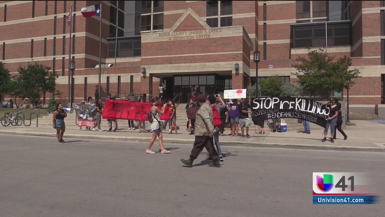 Los manifestantes se reunieron a las afueras de la cárcel del condado de Bexar para alzar la voz ante la separación de familias y la detención de personas.