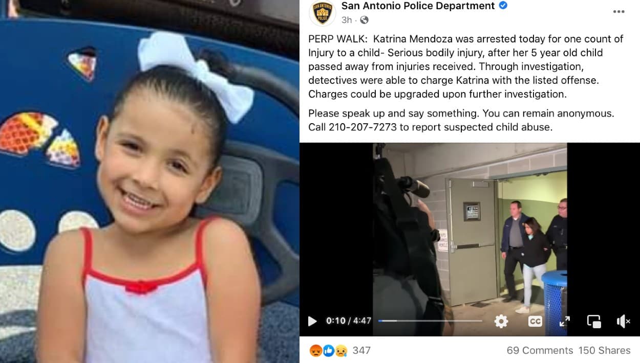 Katrina Rose Mendoza fue arrestada este jueves 10 de febrero en conexión con la muerte de su hija de 5 años, Mercedes Losoya. Antes, la Policía de San Antonio, también detuvo a José Ángel Ruiz, novio de la mujer y a quien se alega le pidió ayuda para supuestamente disciplinar a la niña.