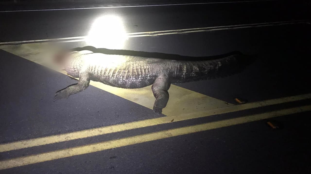 Ahí encontraron que una camioneta negra había impactado un caimán de gran tamaño y había volcado, saliendo del camino.