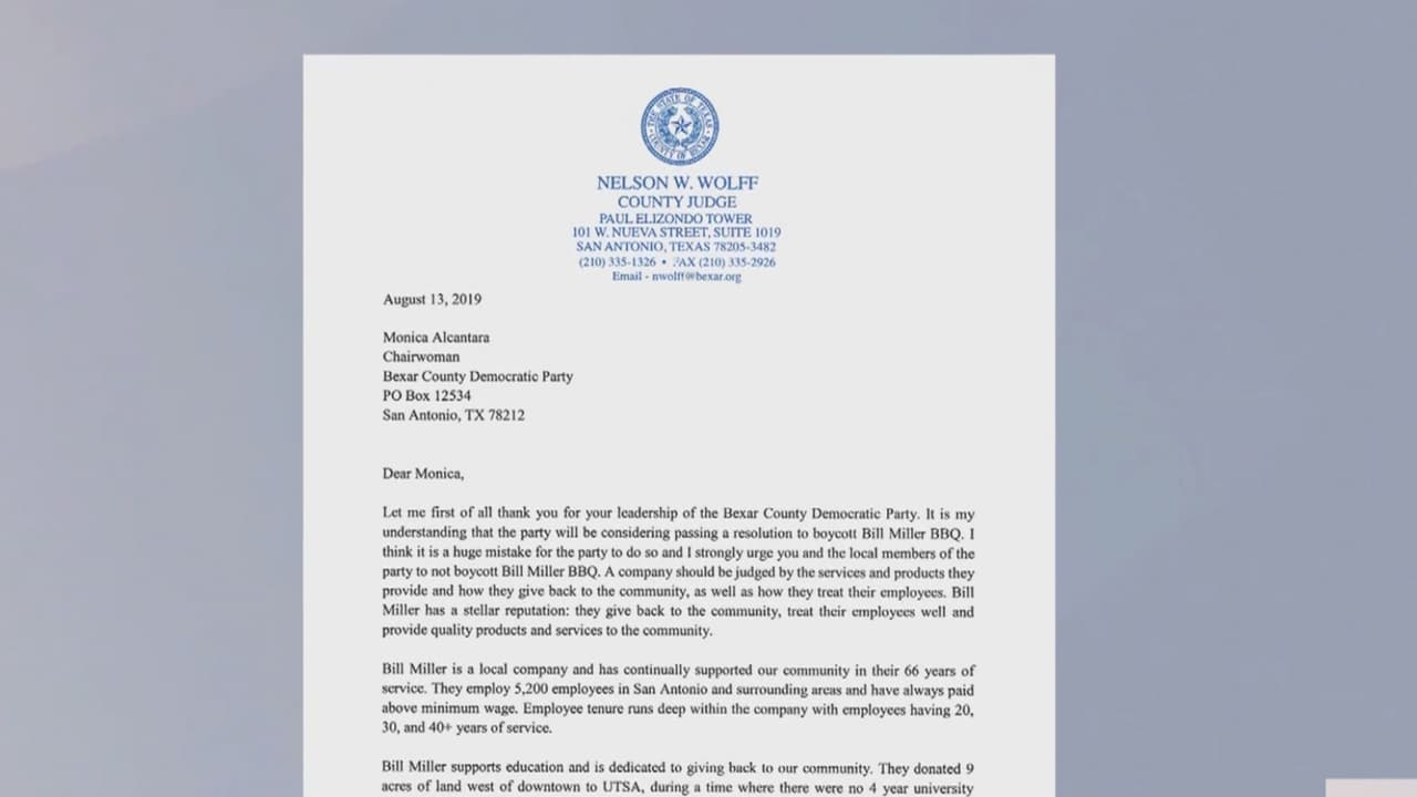 El juez del condado de Bexar, Nelson Wolf, publicó una carta en redes sociales pidiendo no boicotear la cadena de restaurantes Bill Miller BBQ.