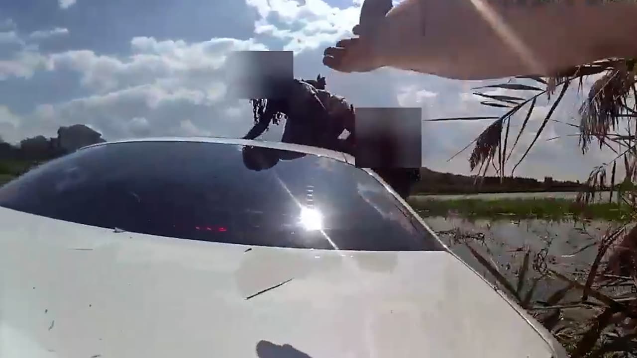La cámara corporal de un oficial del condado de Kaufman, en Texas, grabó el dramático rescate después de que una lección de manejo terminara con el auto en el agua.