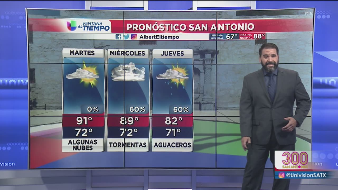 Un aumento de nubes, lluvia y tormentas para este martes y miércoles, pero con temperaturas por encima de los 90 grados, lo que mantendrá el ambiente cálido.