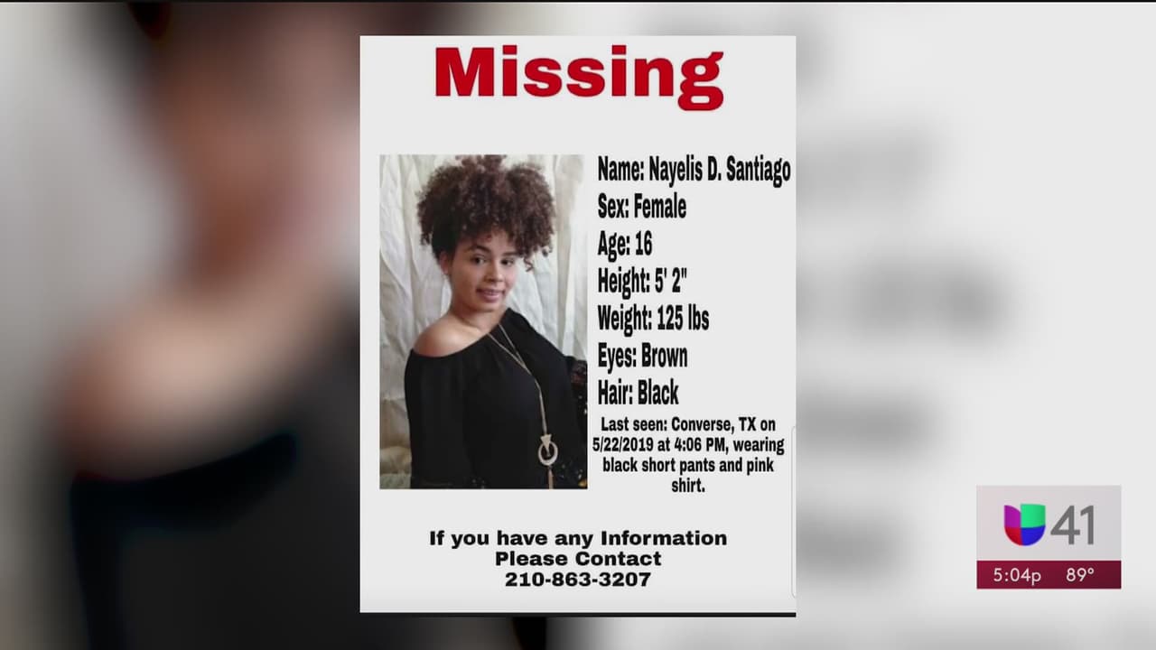 Nayelis D. Santiago, de 16 años, desapareció hace una semana en Converse. Sus padres temen haya sido raptada; ya que recibieron una llamada telefónica donde les dijo llorando que estaba bien, pero que no podía regresar.