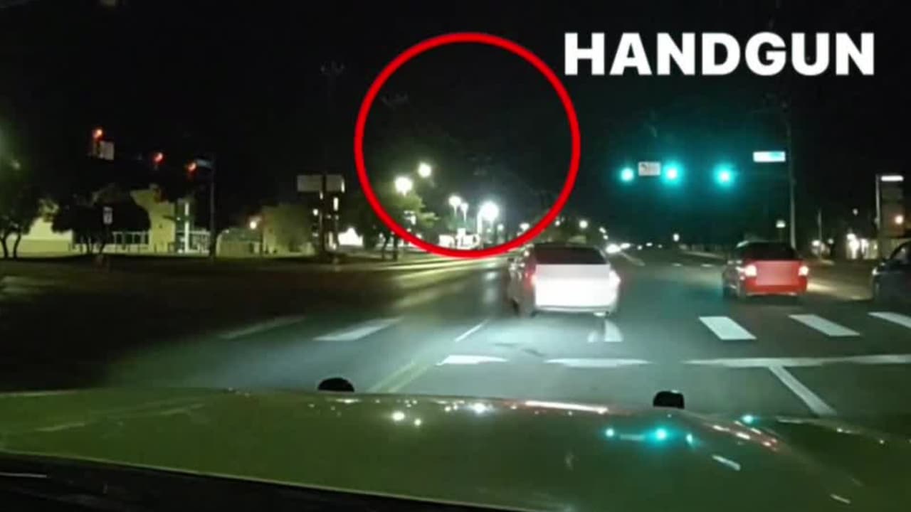 La Oficina del Alguacil del Condado de Bexar reveló las imágenes de una cámara de vigilancia de una de sus patrullas, en las que se ve al pasajero de un vehículo mostrando, a través de la ventana, una pistola en diferentes puntos de San Antonio. Según el reporte, la acción desató una persecución que resultó con el sospechoso atropellado por un oficial. El sujeto fue identificado posteriormente como Iván Castillo, de 20 años.