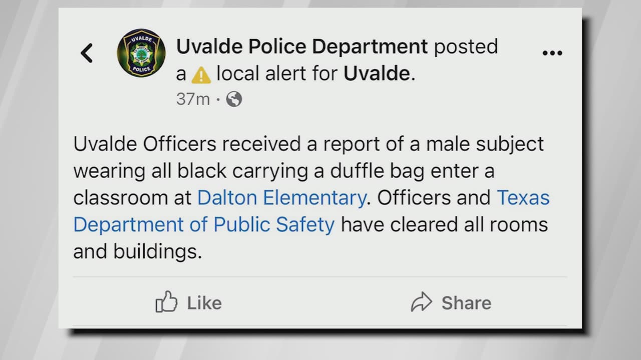 La policía de Uvalde dio a conocer que un hombre forzó su entrada a los terrenos de la escuela Dalton. Todas las aulas fueron revisadas pero el sospechoso no fue hallado.