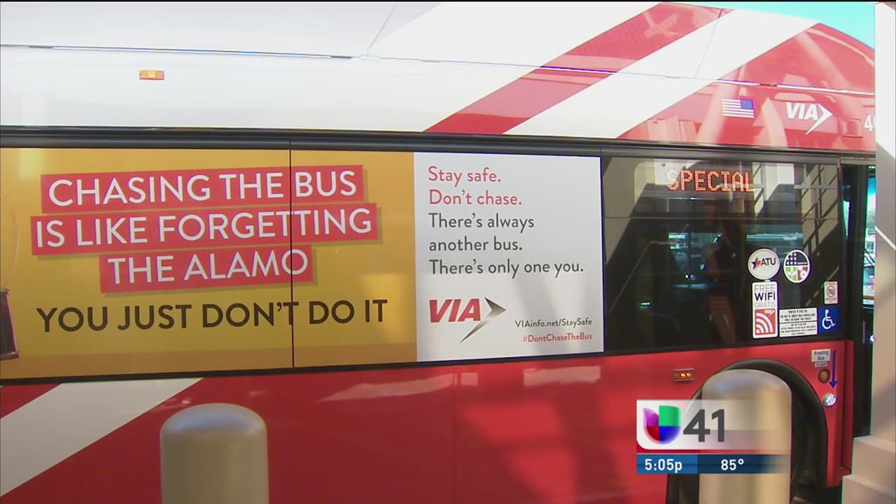 El Sistema de Transporte Público VIA presentó este martes una campaña de seguridad para generar conciencia entre los peatones sobre los peligros de perseguir al autobús y la importancia de seguir las señales peatonales.