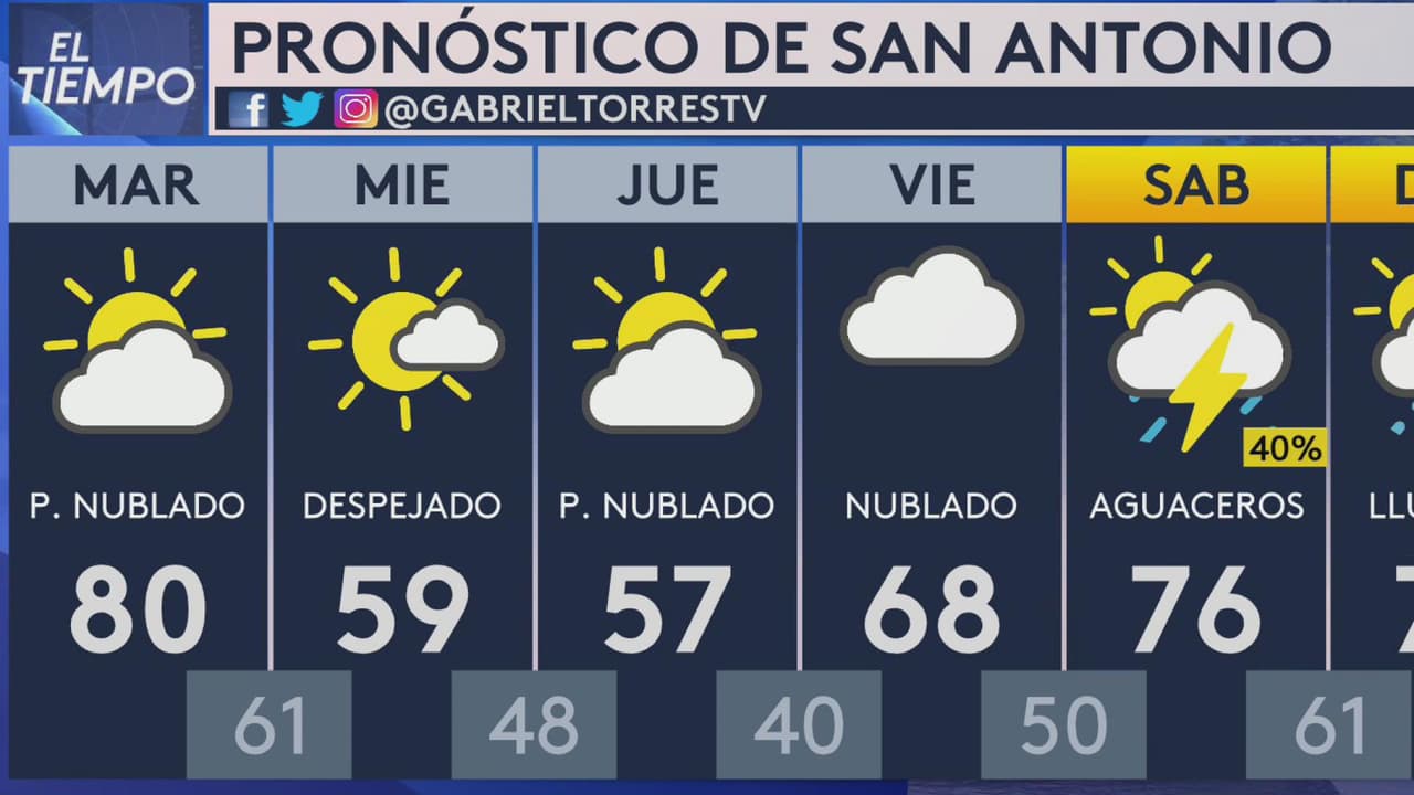 Probabilidad de precipitaciones en San Antonio para la madrugada y mañana del martes