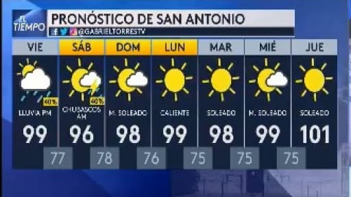 Cielos parcialmente nublados y posibilidad de lluvia desde la tarde de este viernes en la región, sin embargo, las temperaturas se mantienen en los 99°F. Para el fin de semana calor radiante.