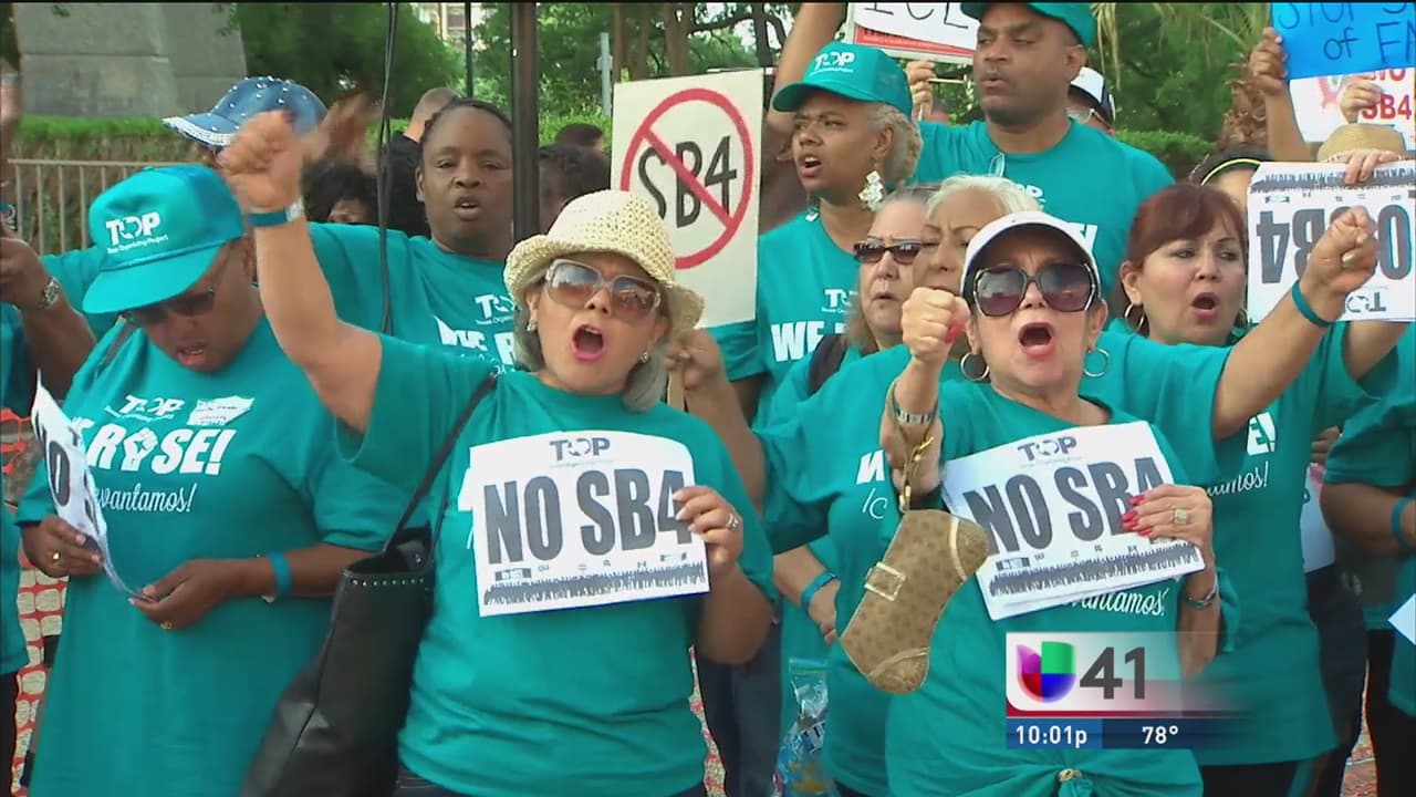 Protesta en San Antonio en apoyo a la demanda que busca frenar la SB4