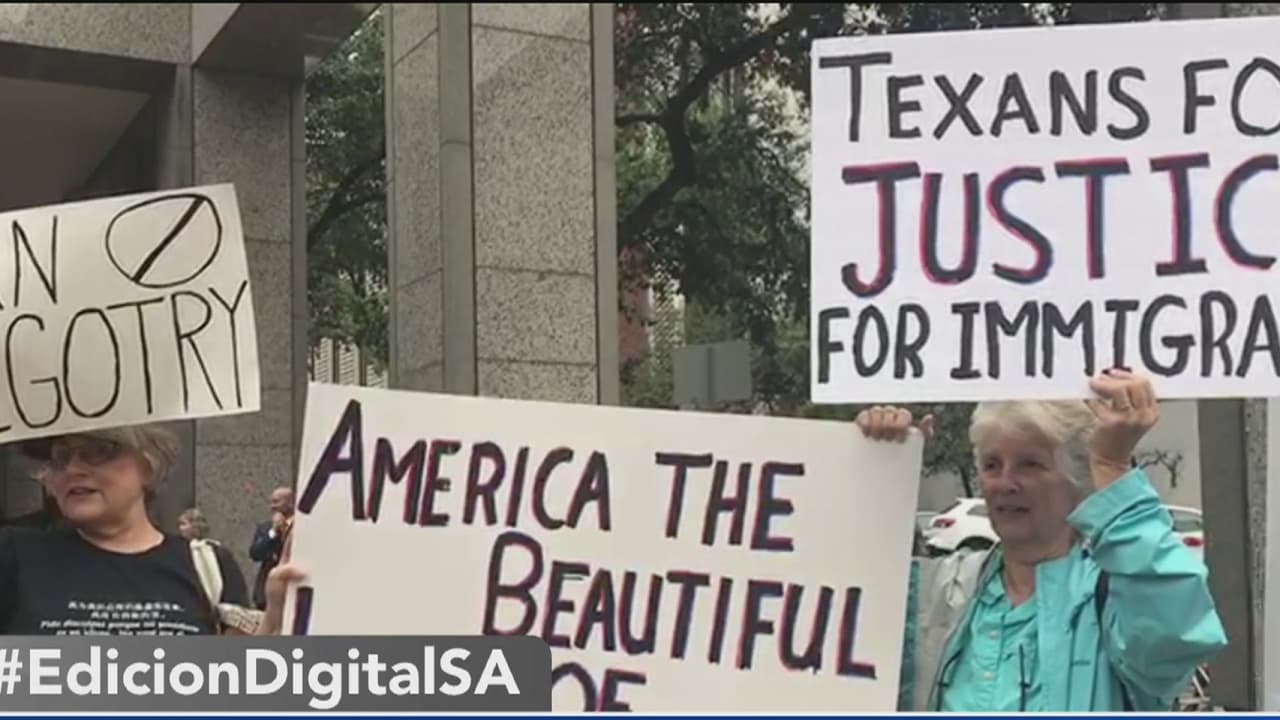 Decenas de personas se dieron cita en la capital texana para protestar en contra de la visita del fiscal general, Jeff Sessions, y sus políticas en contra de la inmigración.