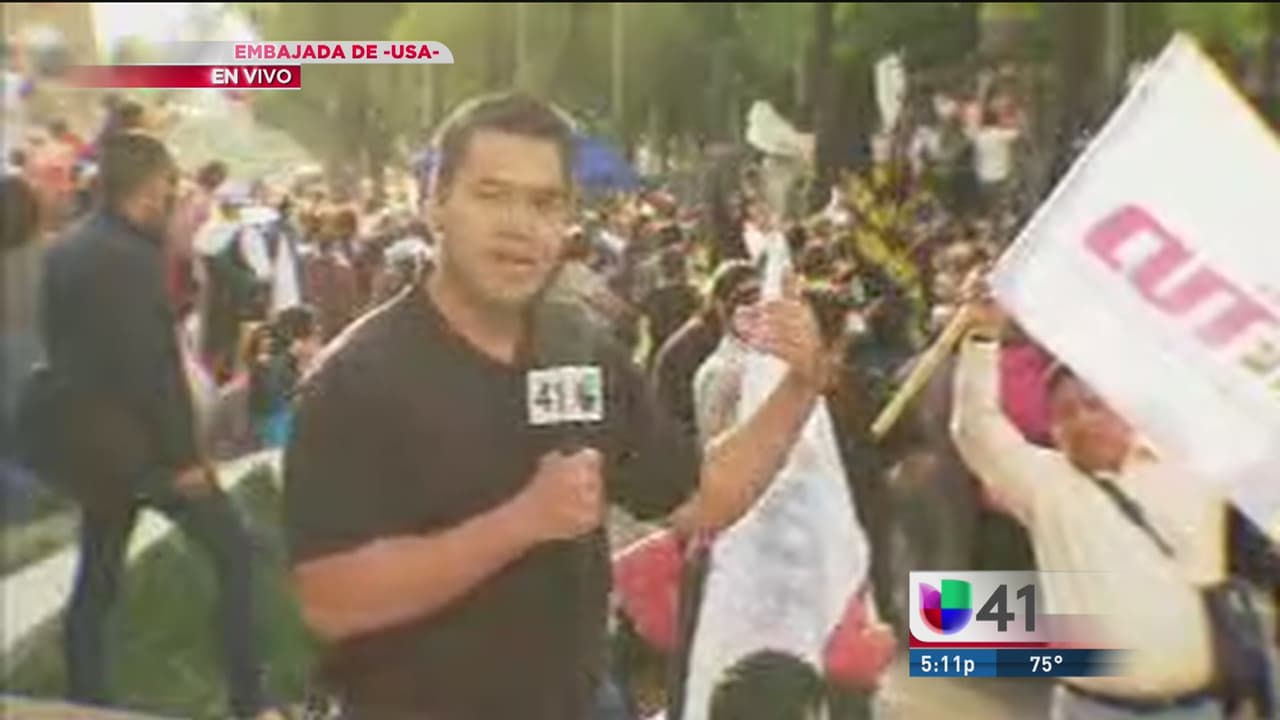 La Av. Paseo de la Reforma se llenó de gente a la altura de la embajada de los Estados Unidos, cientos de personas llegaron hasta allí para protestar por la llegada de Trump a la presidencia.