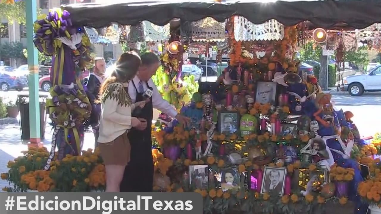 Gerardo Carbajal, representante de la familia Cortez, nos habla sobre el altar de muertos comunitario que se montó en el Market Square y lo que significan sus elementos.