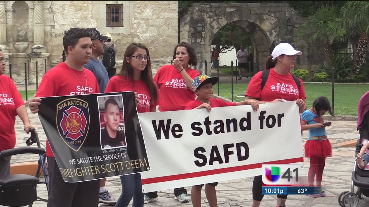 La marcha salió de la plaza del Álamo y concluyó frente al cuartel general donde se realizó una vigilia donde amigos, familiares y miembros de la comunidad honraron su memoria y su heroica labor.
